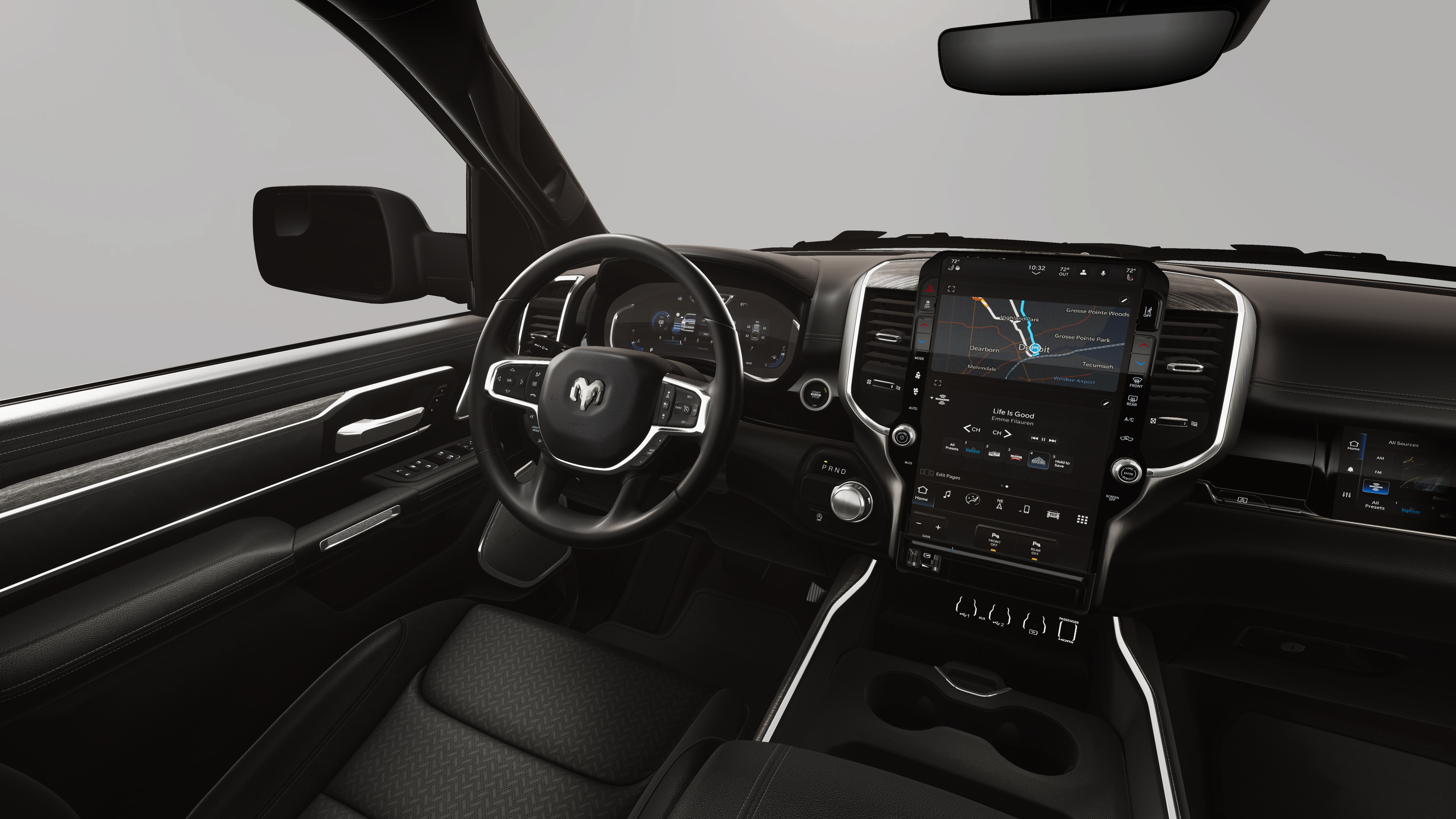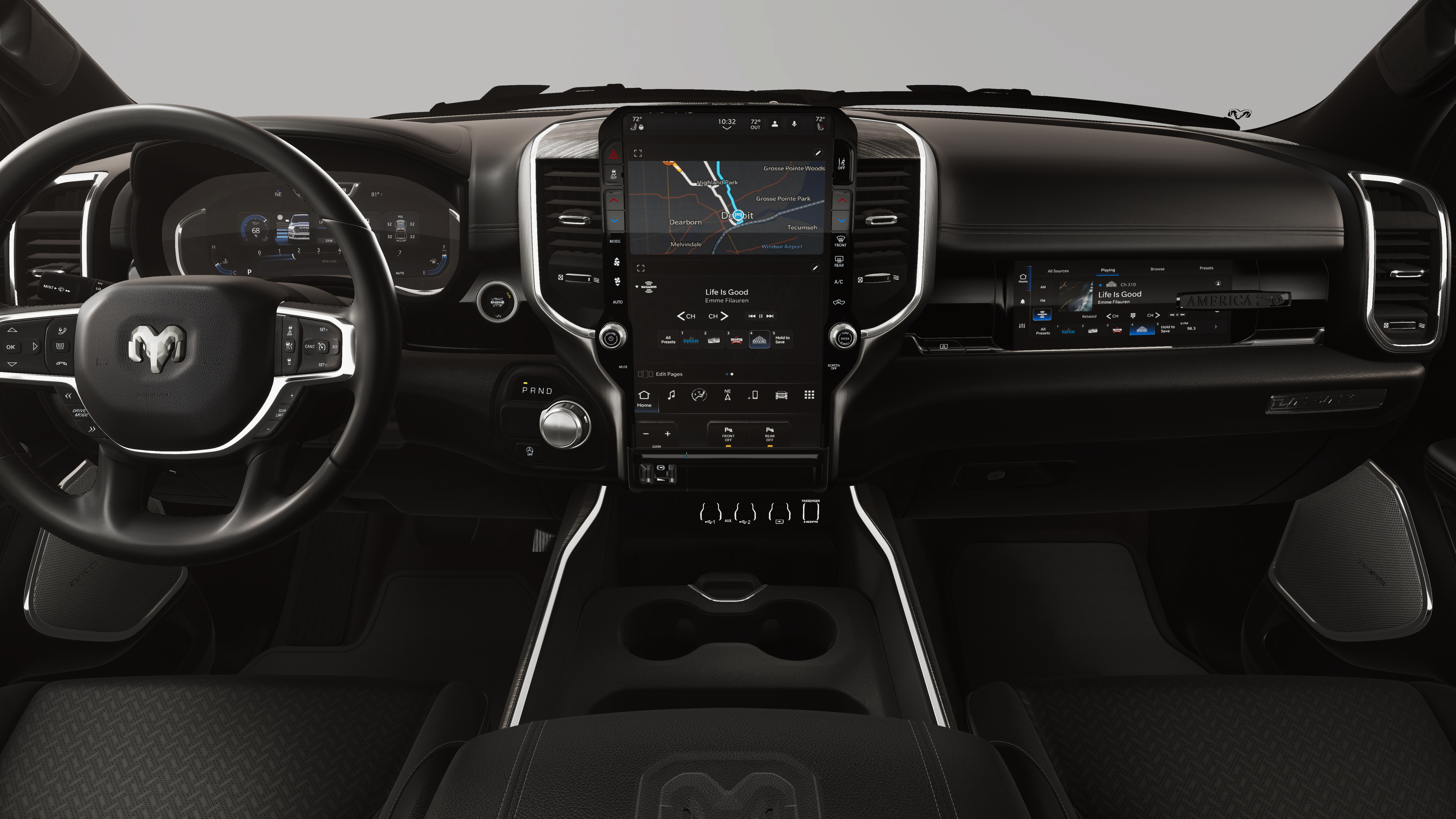 NIGHT EDITION Black Headlamp Bezels, Wheels: 22 x 9 Forged Aluminum, Tires: 285/45R22XL BSW All Season, Pirelli Brand Tires, Proximity Approach/Departure Lamps, Anti-Spin Differential Rear Axle, Accent Color Door Handles, Black Interior Accents, Body Color Front Bumper, Grille Surround 3 Black Texture 2 Black, Body Color Rear Bumper w/Step Pads, RAM Grille Badge - Black, Black Painted Exterior Mirrors Caps, Exterior Mirrors Approach Lamps, Accent Color Premium Power Mirrors, Sport Performance Hood, Black Exterior Truck Badging, Accent Color Tailgate Handle, Dual Exhaust w/Black Tips, Black Tail Lamp Bezels, LARAMIE LEVEL 2 EQUIPMENT GROUP Rain Sensitive Windshield Wipers, 14.4 Touchscreen Display, Front Passenger Interactive Display, Radio: Uconnect 5 Nav w/14.4 Display, harman/kardon® 19 Speaker Premium Sound, Cluster 12 TFT Color Display, Power Tailgate, DUAL-PANE PANORAMIC SUNROOF LED Dome/Reading Lamp, Dome Dual LED Reading Lamp, POWER DEPLOYABLE RUNNING BOARDS, BED UTILITY GROUP MOPAR Spray In Bedliner, MOPAR 4 Adjustable Cargo Tie-Down Hooks, Exterior 115V AC Outlet, TRI-FOLD TONNEAU COVER, TRANSMISSION: 8-SPEED AUTOMATIC (8HP75) (STD), ENGINE: 3.0L I6 HURRICANE SO TWIN TURBO ESS (STD).