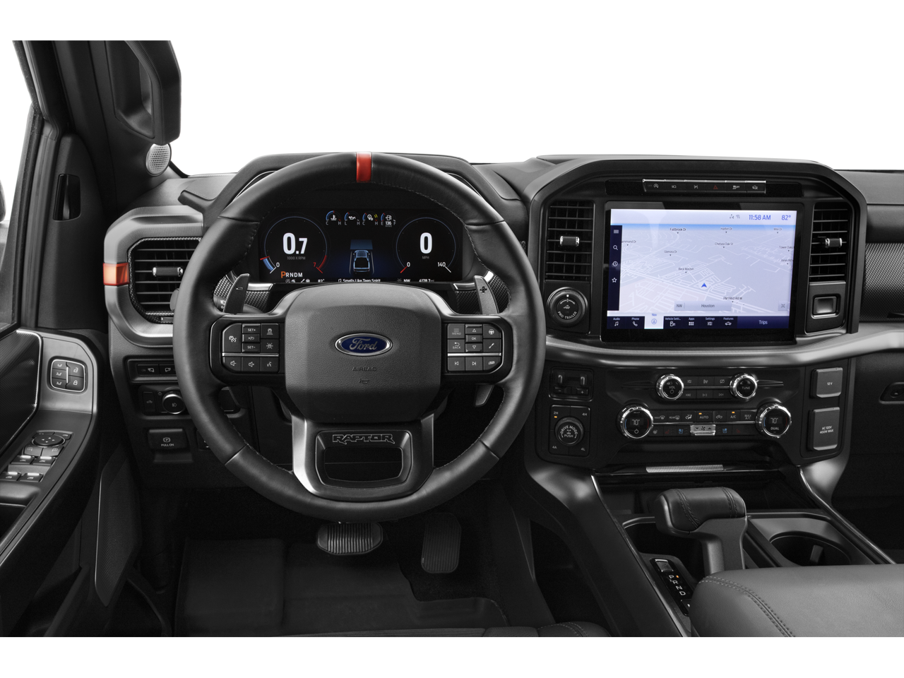 RAPTOR 37 PERFORMANCE PACKAGE unique low gloss black tint carbon fiber accents: upper glovebox door, dash applique, register bezels, media bin door and front and rear door applique, Raptor 37 Graphics, Sport Tuned Shock Absorbers, Wheels: Unique 17 Forged Aluminum Bead-Lock Capable, Tires: 37x12.5R17 BSW All-Terrain, Unique Blue Leather Console w/Raptor Logo, EQUIPMENT GROUP 801A HIGH Wireless Charging Pad, Rain-Sensing Wipers, Power Tilt/Telescoping Steering Column w/Memory, Torsen Package, Front-Axle w/Torsen Differential, Rigid LED Fog Lamp, Tow Technology Package, smart trailer tow connector and BLIS w/trailer tow coverage where BLIS is available, Integrated Trailer Brake Controller, 360 Degree Camera, trailer reverse guidance, Pro Trailer Backup Assist, Convenience Package, Interior Work Surface, Connected Built-In Navigation, Navigation services require SYNC4 and FordPass Connect (optional on select vehicles), complimentary connect service and the FordPass app (see FordPass Terms for details), Eligible vehicles receive a complimentary 90-day trial of navigation services that begins on the new vehicle warranty start date, Customers must, POWER TECH PACKAGE Power Tailgate, tailgate step and tailgate work surface, Pro Power Onboard - 2KW, TOUGH BED SPRAY-IN BEDLINER, TRANSMISSION: ELECTRONIC 10-SPEED AUTOMATIC terrain management modes: normal/baja/rock crawl/sport/mud-sand/wet-snow and tow-haul mode (STD).