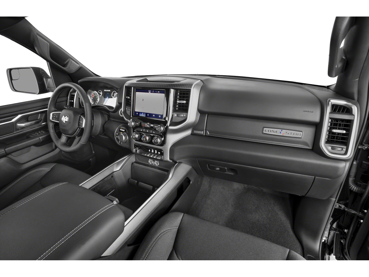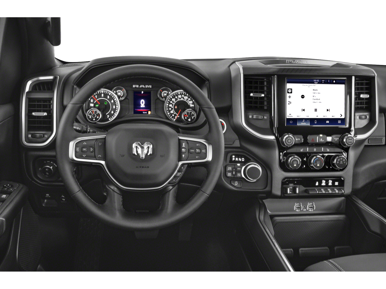 BIG HORN LEVEL 2 EQUIPMENT GROUP Google Android Auto®, Power Adjustable Pedals, Leather Wrapped Steering Wheel, 12 Touchscreen Display, Glove Box Lamp, Auto Power-Folding Mirrors, 115V Auxiliary Rear Power Outlet, Media Hub w/2 Charge Only USBs, Heated Front Seats, Security Alarm, Black Premium Power Mirrors, Apple CarPlay®, Premium Overhead Console, 9 Amplified Speakers w/Subwoofer, Remote Tailgate Release, 115V Auxiliary Power Outlet, LED Dome Lamp w/On/Off Switch, Universal Garage Door Opener, 2nd Row In Floor Storage Bins, Sun Visors w/Illuminated Vanity Mirrors, LED Footwell Lighting, Power 2-Way Driver Lumbar Adjust, Rear Window Defroster, Rear View Auto Dim Mirror, Rear Power Sliding Window, GPS Navigation, Overhead LED Lamps, Auto Dim Exterior Driver Mirror, SiriusXM w/360L, ENGINE: 3.0L I6 HURRICANE SO TWIN TURBO ESS Aux Battery, Secondary Active Grille Shutters, 700 Amp Maintenance Free Battery, Active Noise Control System, GVWR: 7,100 lbs, 3.55 Rear Axle Ratio, Dual Rear Exhaust w/Bright Tips, Start-Stop Dual Battery System, 230 Amp Alternator, NIGHT EDITION Tires: 275/55R20 OWL All Season, Accent Color Premium Power Mirrors, Exterior Mirrors w/Supplemental Signals, Black Headlamp Bezels, Exterior Mirrors Courtesy Lamps, Grille Black Surround Black Mesh, Auto Power-Folding Mirrors, Wheels: 20 x 9.0 Aluminum Painted Clad, Auto Dim Exterior Driver Mirror, Black Exterior Truck Badging, Anti-Spin Differential Rear Axle, Accent Color Door Handles, Accent Color Tailgate Handle, Black Interior Accents, Body Color Front Bumper, Body Color Rear Bumper w/Step Pads, Black Tail Lamp Bezels, RAM Grille Badge - Black, Black Painted Exterior Mirrors Caps, MOPAR FRONT & REAR RUBBER FLOOR MATS, TRANSMISSION: 8-SPEED AUTOMATIC (8HP75), BLACK, DELUXE CLOTH BUCKET SEATS Bucket Seats, Full Length Floor Console, Power Adjust 8-Way Driver Seat, Rear Center Armrest, Power 2-Way Driver Lumbar Adjust. Ram Big Horn with Diamond Black Crystal Pearlcoat exterior and Black interior features a Straight 6 Cylinder Engine with 420 HP at 5200 RPM*.